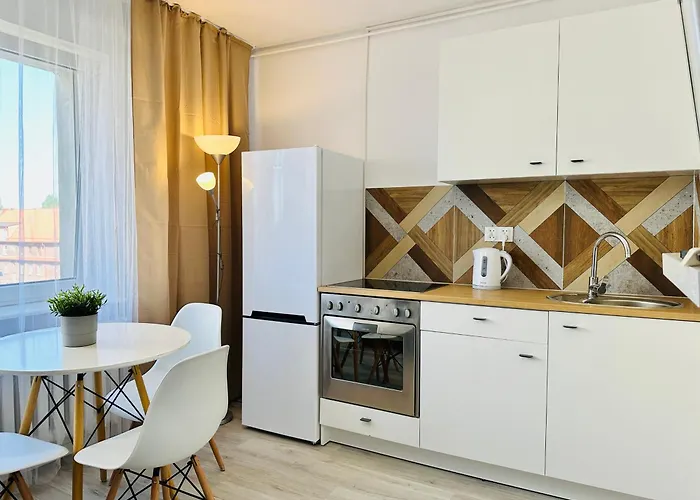 Obiekt jest wyposażony w pełnowymiarową kuchnię z urządzeniami do przygotowywania własnych potraw. Około 5 min pieszo od obiektu znajduje się restauracja Mata Co Chceta, w której podają dania kuchni wschodnioeuropejskiej. Ten apartament znajduje się w odległości minutowego spaceru od najbliższego przystanku autobusowego Grunwaldzka.